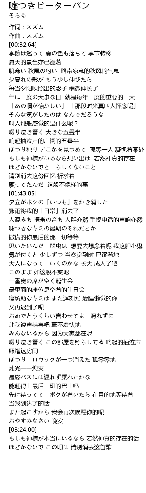 | Song | 噓つきピーターパン |