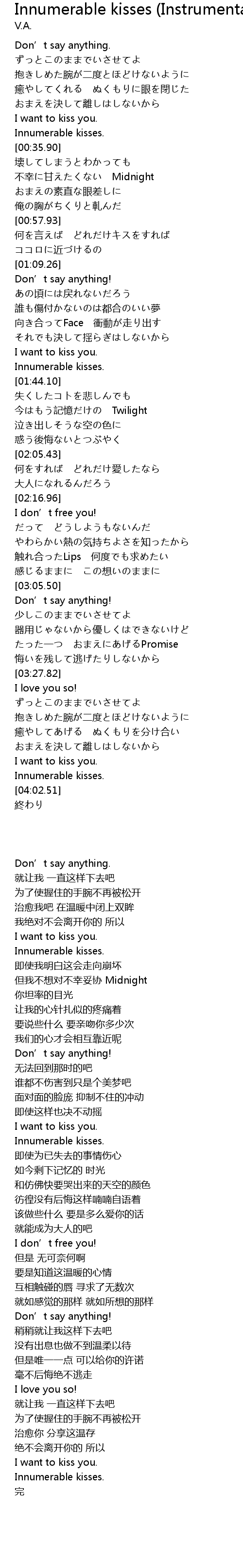 | [03:55.84] | Innumerable kisses. |
