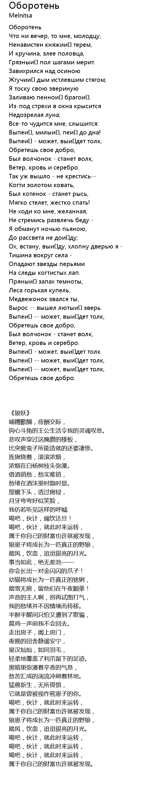 Оборотень  Lyrics