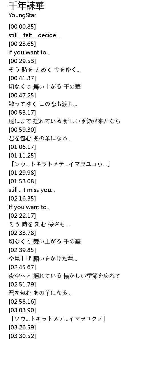 | [00:41.53] | 切なくて 舞い上がる 千の華 |