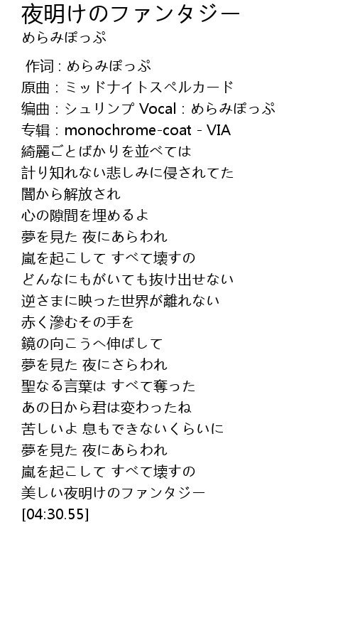| [04:18.20] | 美しい夜明けのファンタジー |