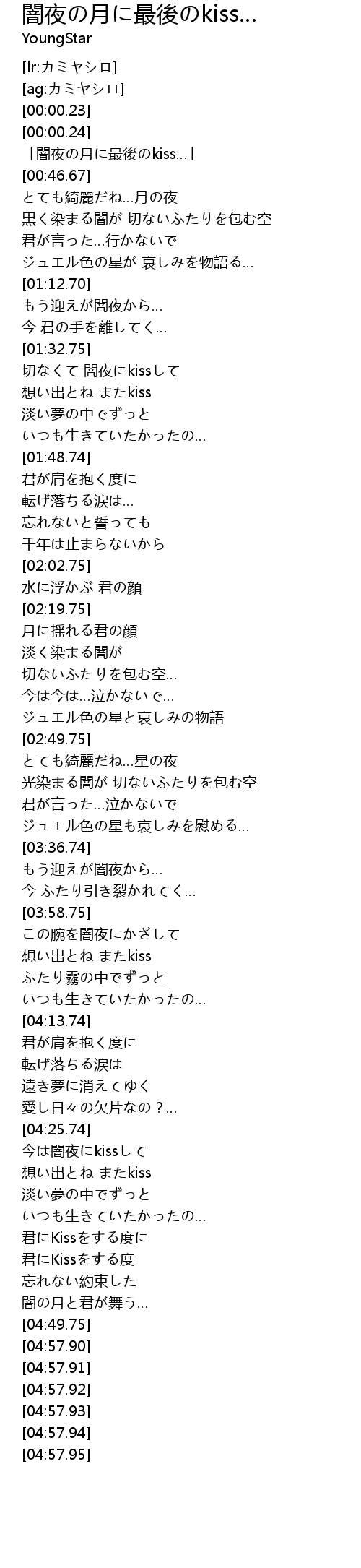 | [00:00.25] | 「闇夜の月に最後のkiss…」 |