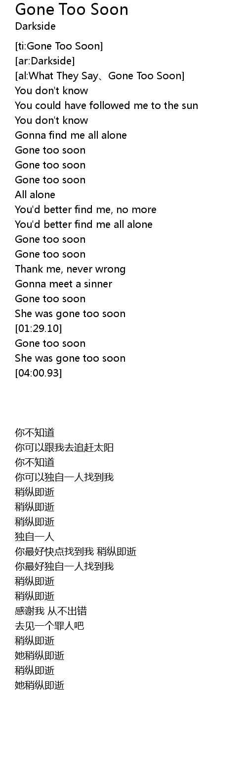 | [00:40.54] | Gone too soon |