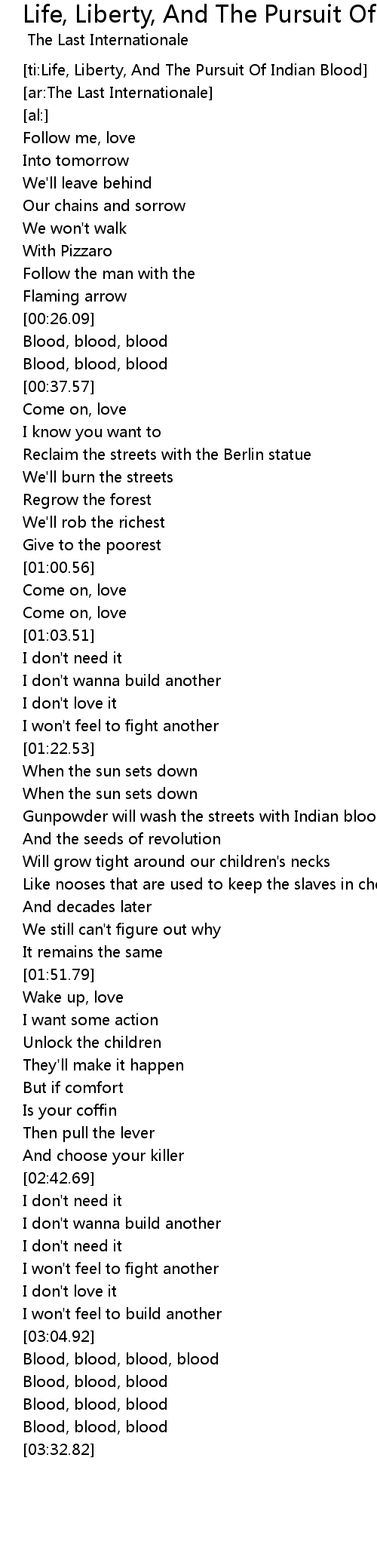 Life, Liberty, And The Pursuit Of Indian Blood Lyrics