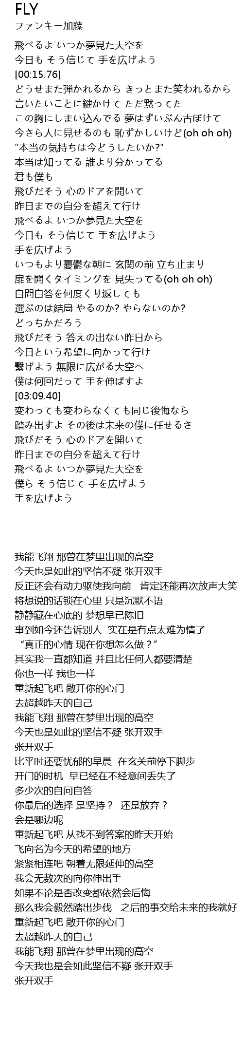 | [02:46.38] | 繋げよう 無限に広がる大空へ |