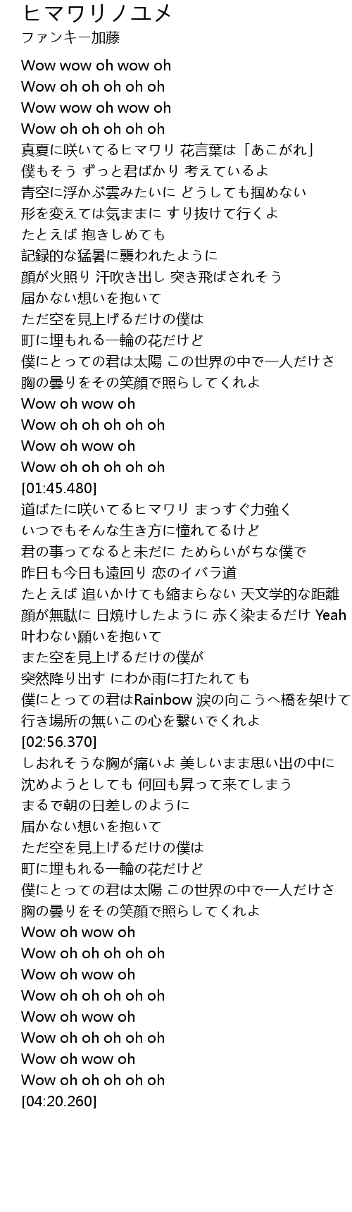 | [04:17.480] | Wow oh oh oh oh oh |
