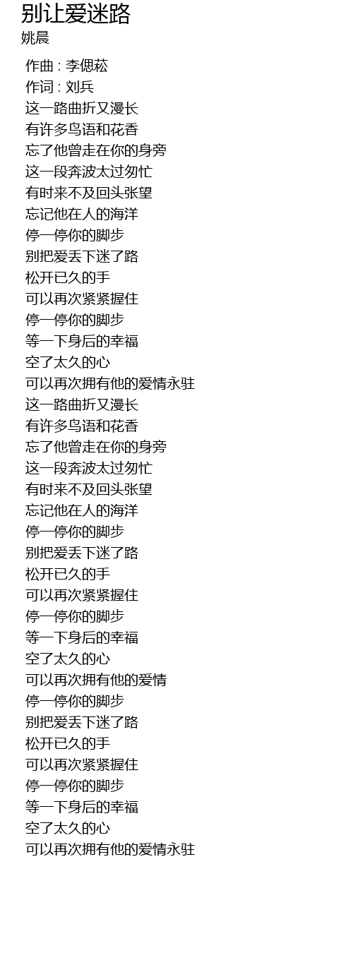 | [00:44.91] | bié bǎ ài diū xià mí le lù |