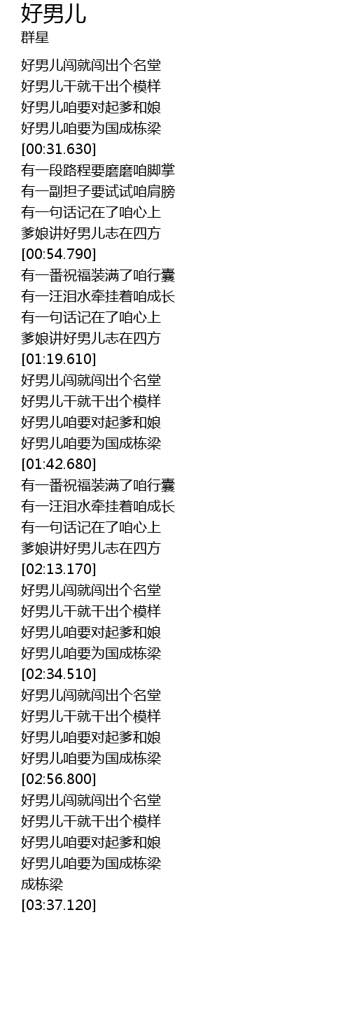 | [03:20.600] | 好男儿咱要为国成栋梁 |