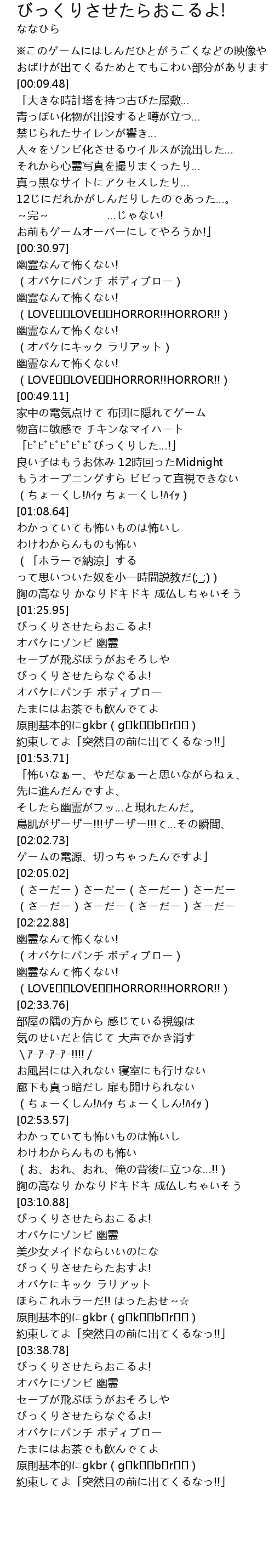 | [03:25.39] | ほらこれホラーだ!! はったおせ~☆ |