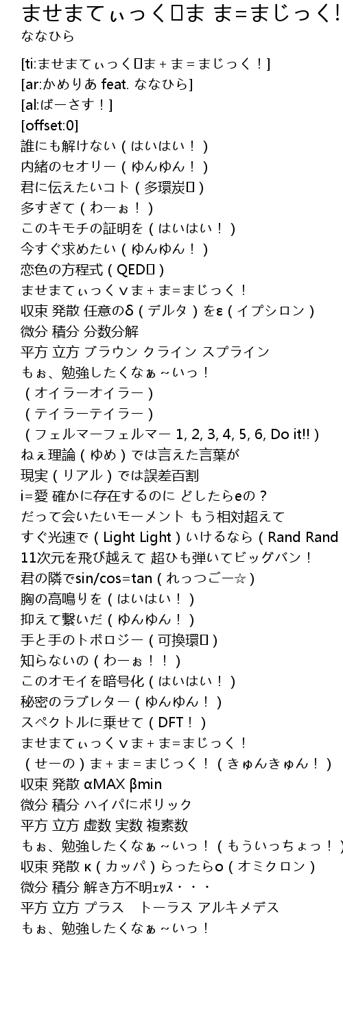 | [01:23.23] | ませまてぃっくvま+ま=まじっく! |