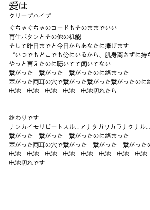 | 塞がった両耳の穴で繋がった繋がった繋がったのに络まった | |