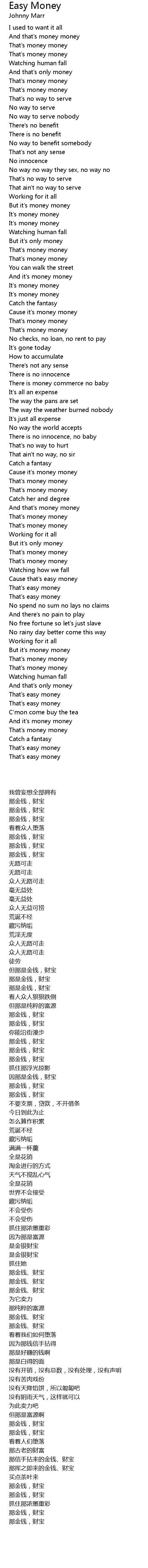 Easy Money Lyrics