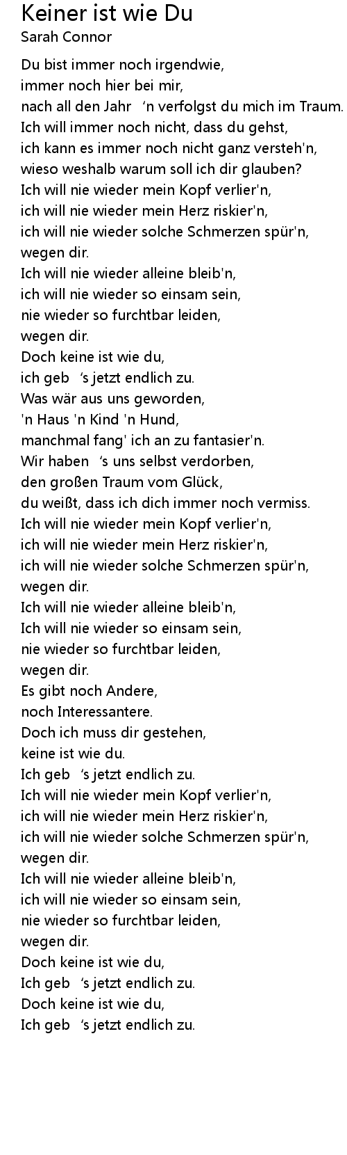 | ich will nie wieder solche Schmerzen spü r' n, | |