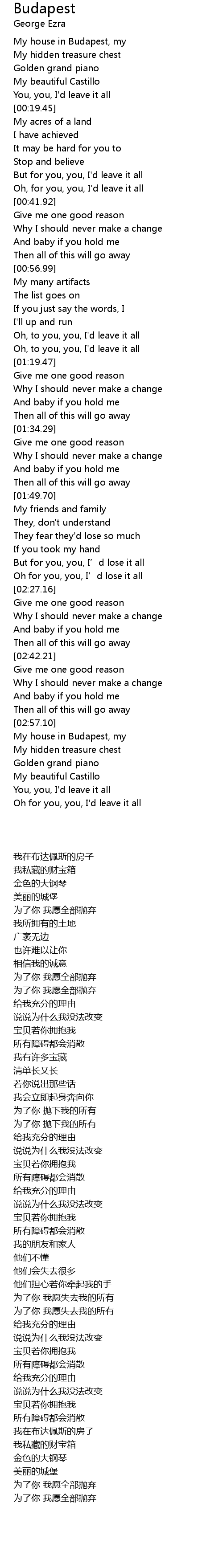 | [03:00.45] | My house in Budapest, my |