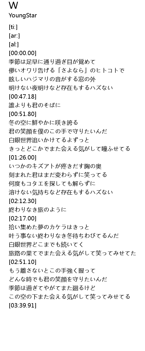 | [02:33.88] | 白銀世界どこまでも続いてく |