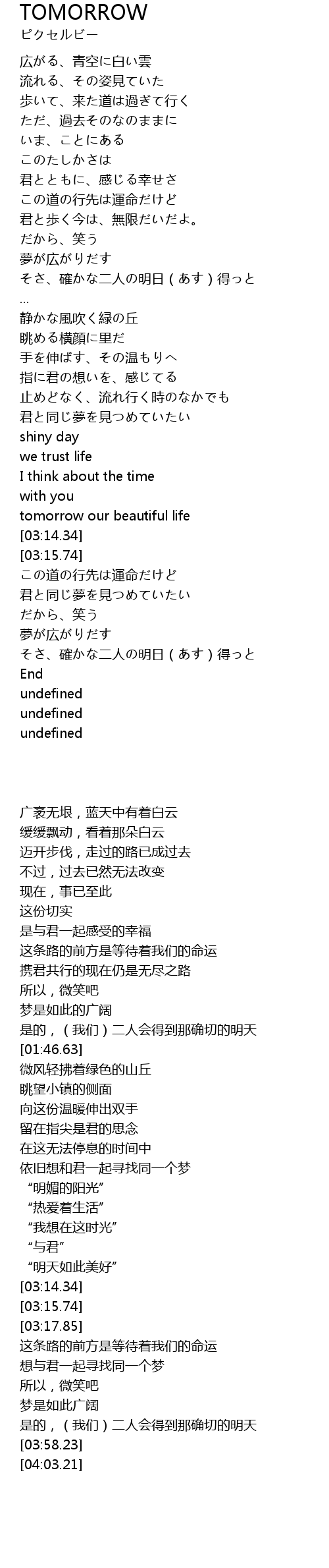 | [03:04.35] | tomorrow our beautiful life |
