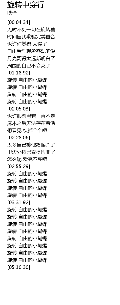 | [04:35.24] | 旋转 自由的小蝴蝶 |