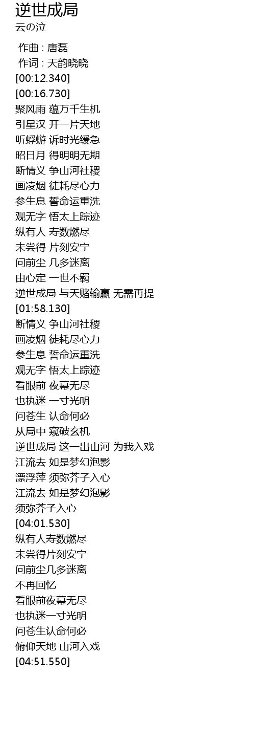 | [01:45.730] | 逆世成局 与天赌输赢 无需再提 |
