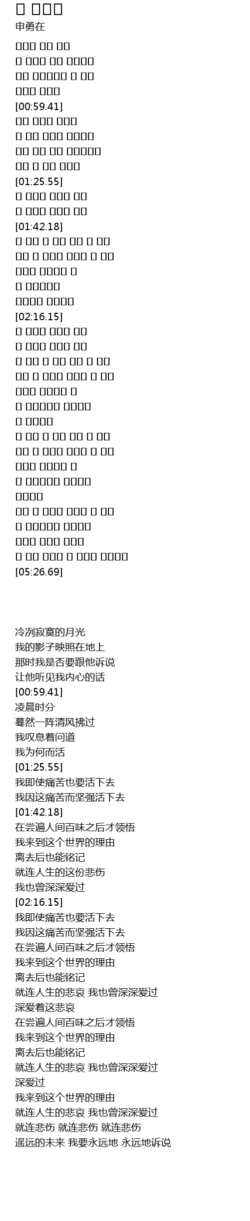 | [04:37.66] | 내가 이 세상을 다녀간 그 이유 |