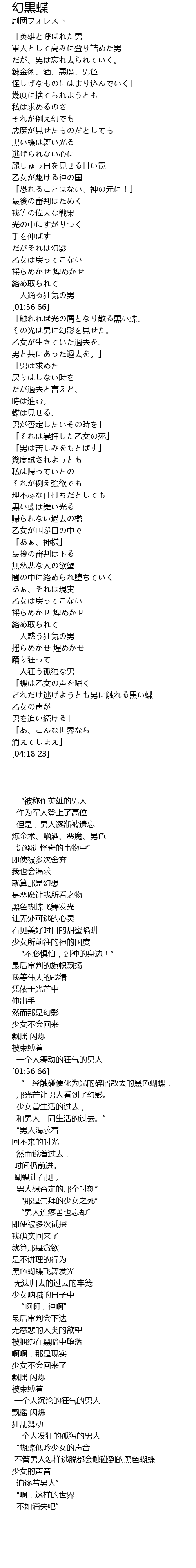 | [04:03.11] | どれだけ逃げようとも男に触れる黒い蝶 |