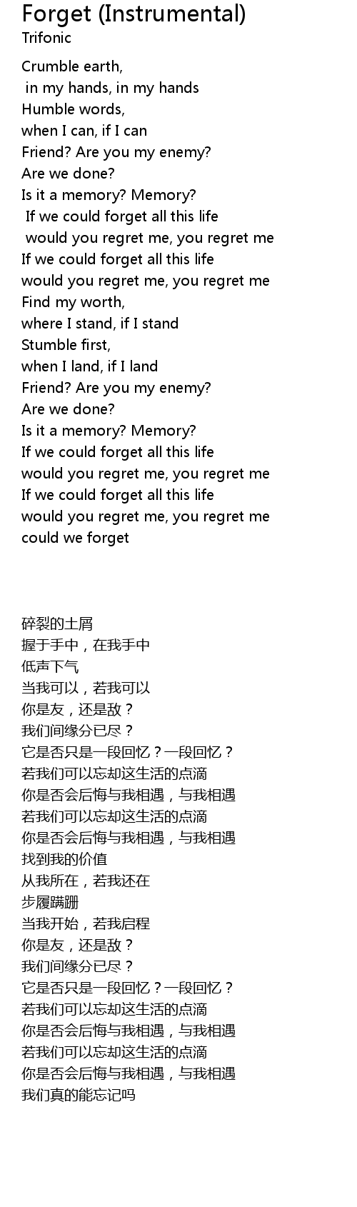 | Song | Forget (Instrumental) |
