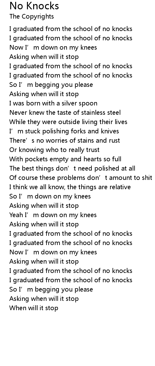 | Song | No Knocks |