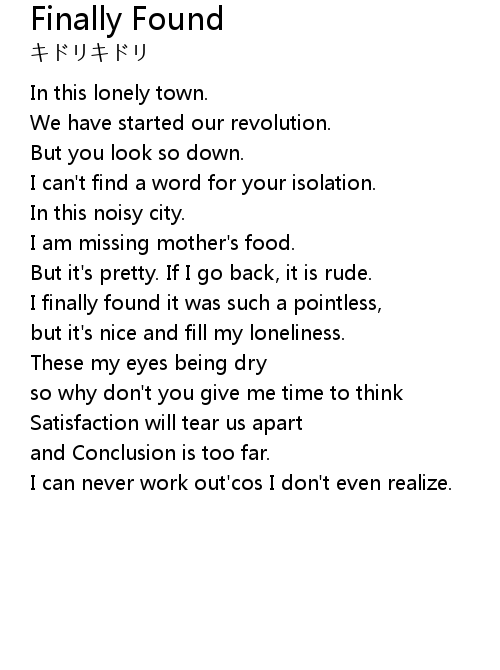 | Song | Finally Found |