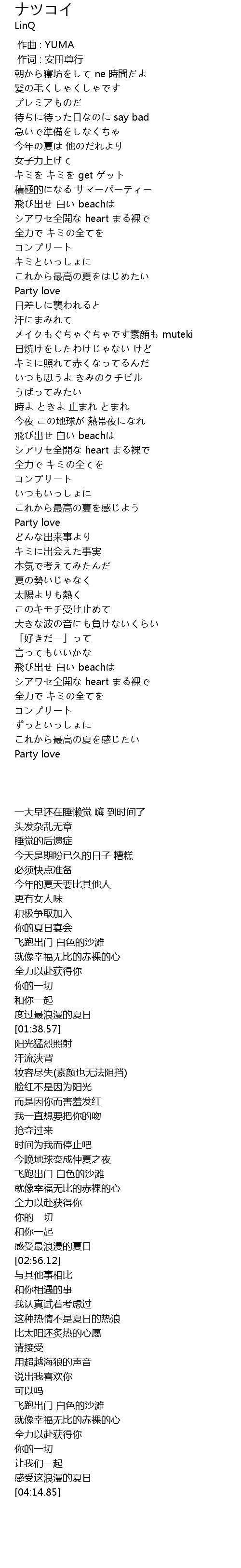 | [02:16.14] | 今夜 この地球が 熱帯夜になれ |