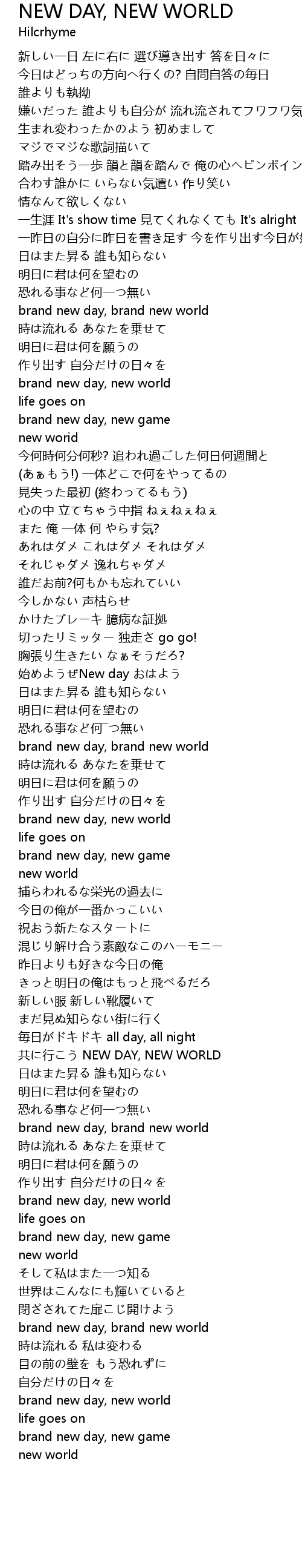 | Song | NEW DAY, NEW WORLD |