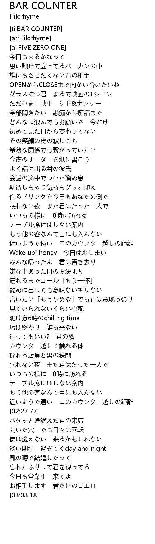 | [02:20.56] | 近いようで遠い このカウンター越しの距離 |