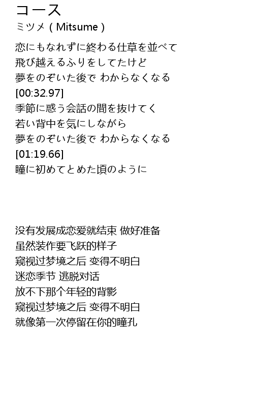 | [01:33.00] | 瞳に初めてとめた頃のように |