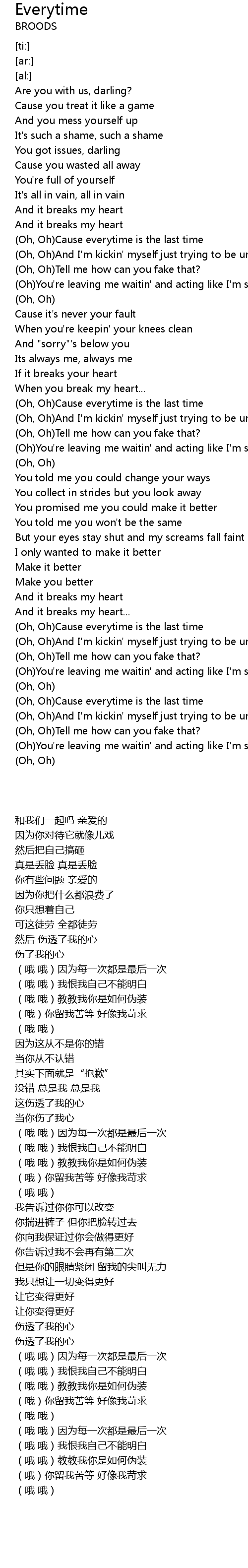 | [00:39.77] | (Oh, Oh)Cause everytime is the last time |