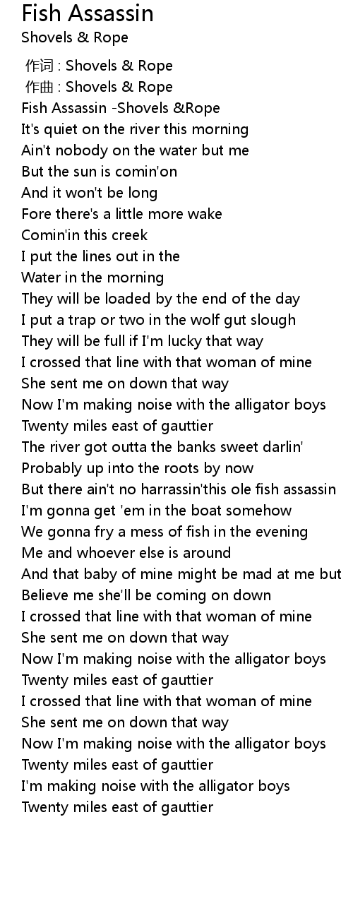 | [00:00.535] | Fish Assassin -Shovels &Rope |