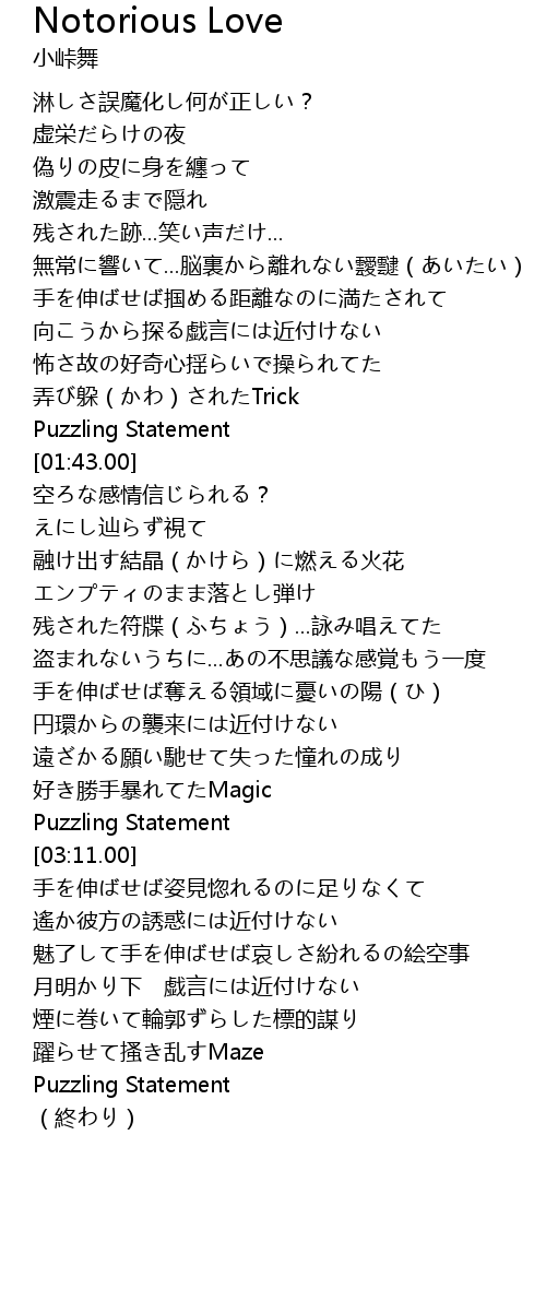 | [01:38.00] | Puzzling Statement |