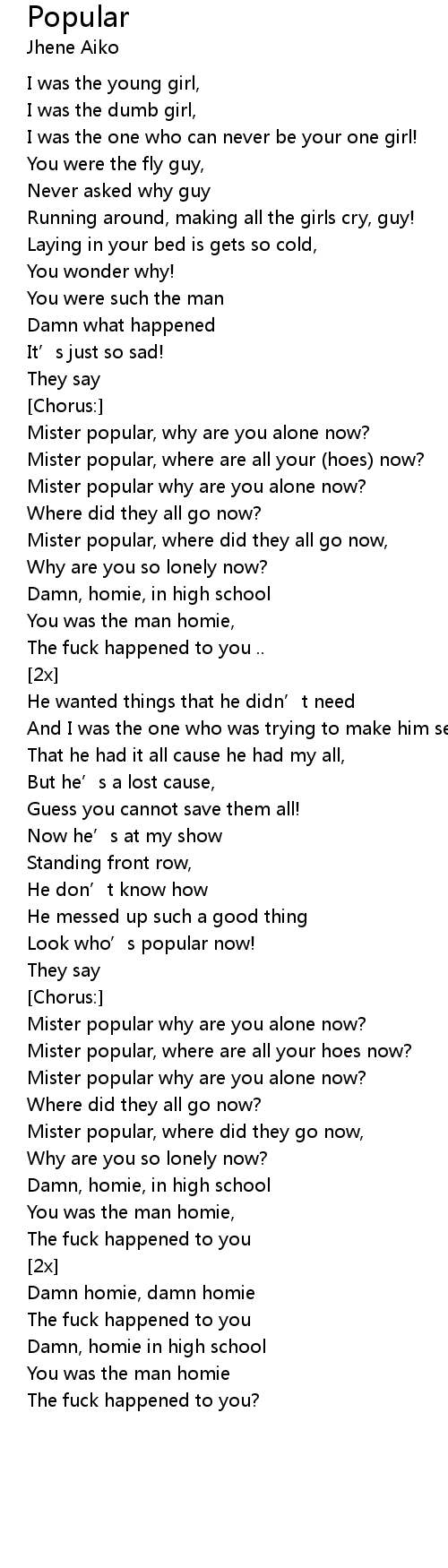 | Mister popular why are you alone now? | |