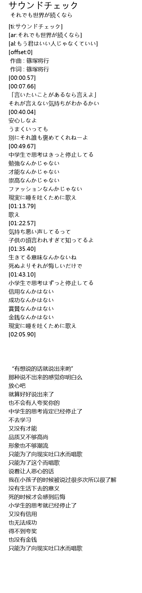 | [01:59.69] | 現実に唾を吐くために歌え |