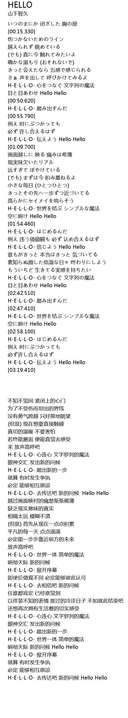 | [02:48.180] | H-E-L-L-O- 世界を结ぶ シンプルな魔法 |