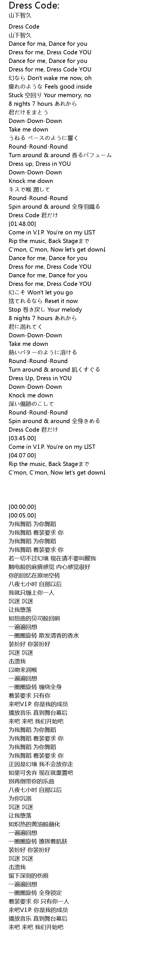| [00:22.00] | Dress for me, Dress Code YOU |