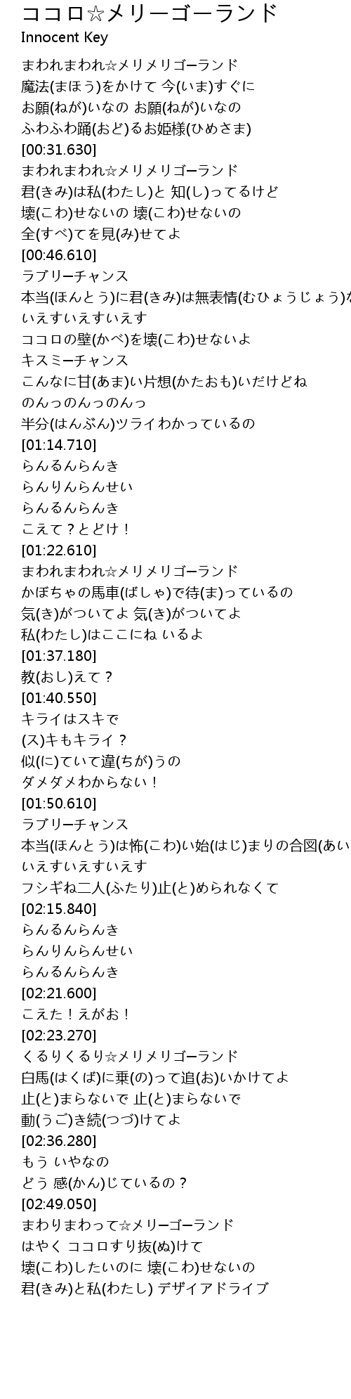 | [02:23.370] | くるりくるり☆メリメリゴ─ランド |