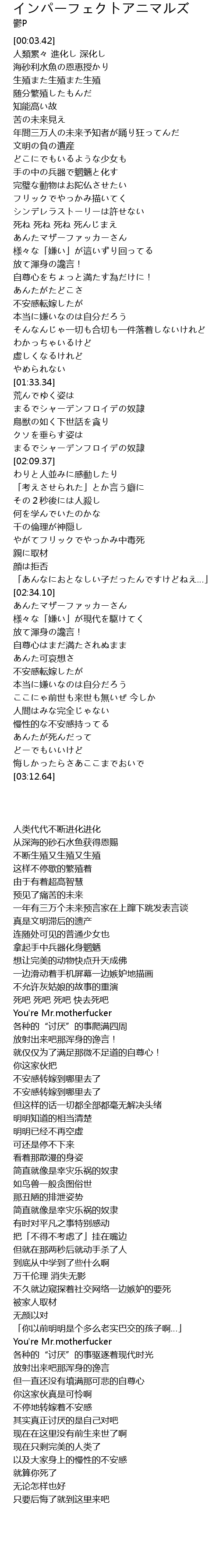| [00:50.64] | 完璧な動物はお陀仏させたい |