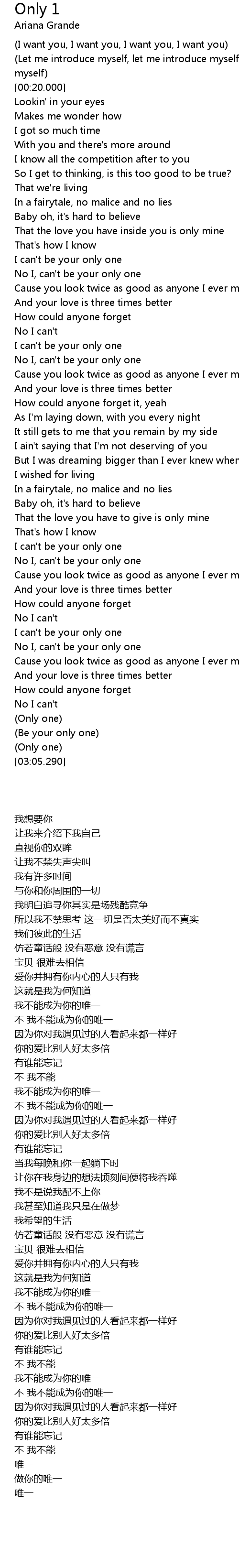 No I, can't be your only one |