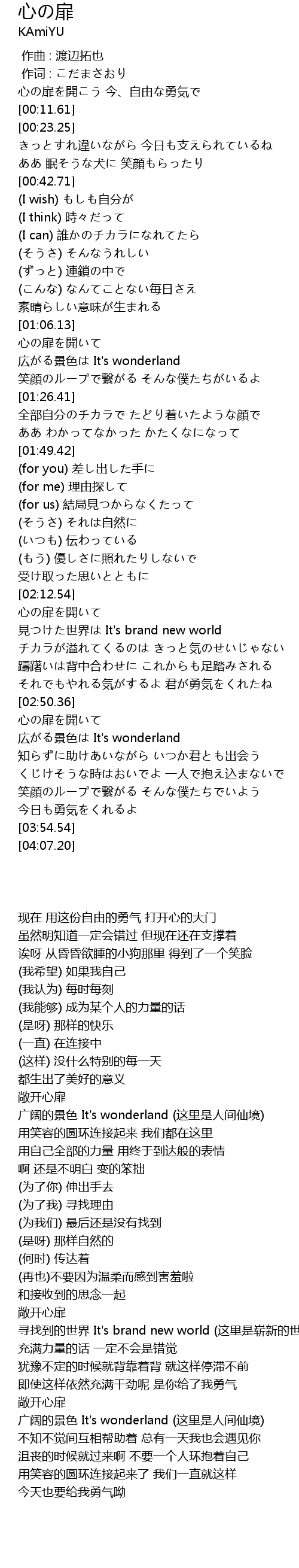 | [02:13.63] | 心の扉を開いて |