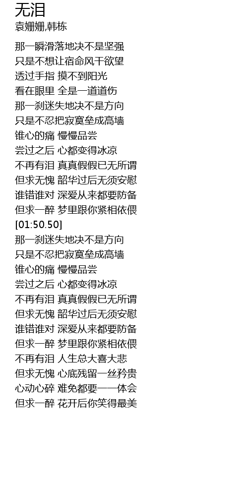 | [01:18.21] | 不再有泪 真真假假已无所谓 |