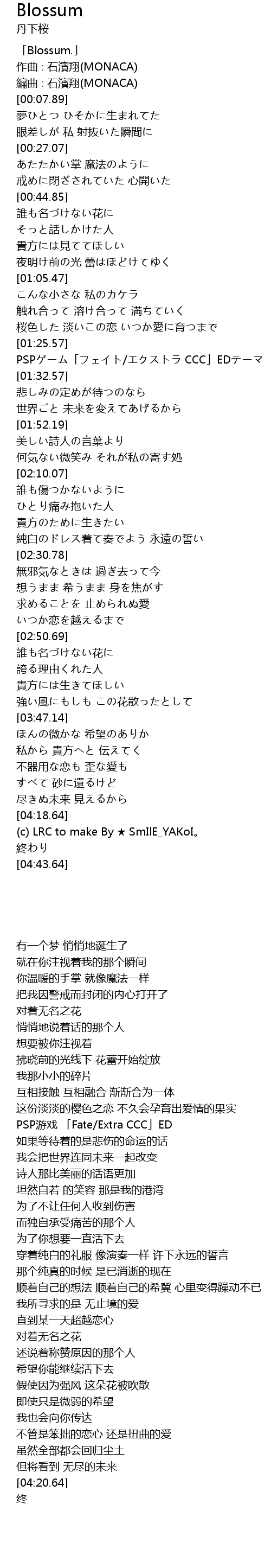 | [01:28.57] | PSPゲーム「フェイト/エクストラ CCC」EDテーマ |