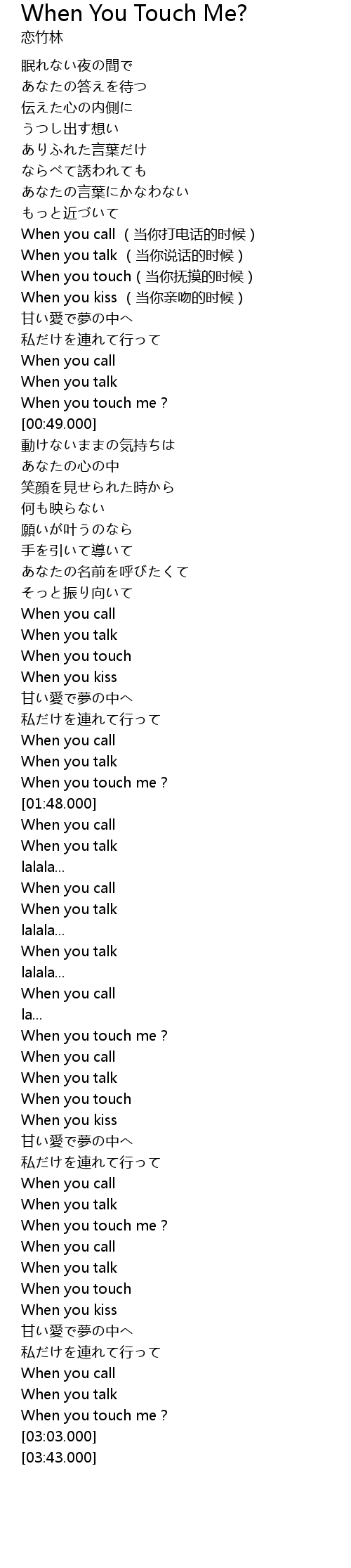 | [00:36.000] | When you touch(当你抚摸的时候) |