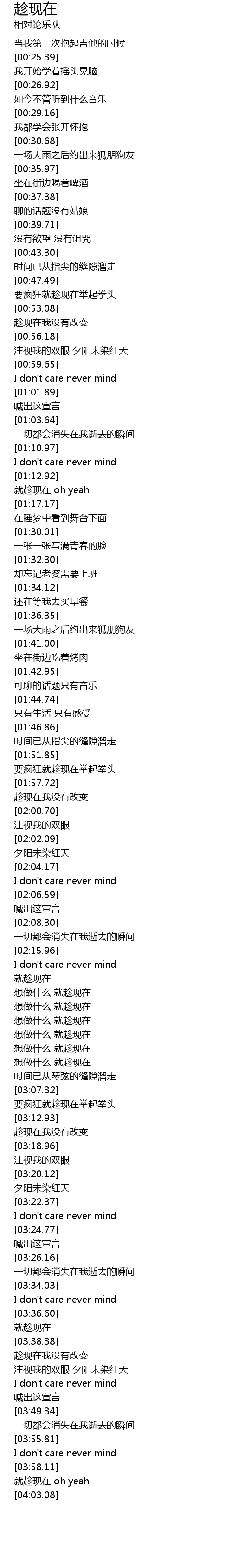 | [02:56.61] | xiǎng zuò shí mǒ jiù chèn xiàn zài |