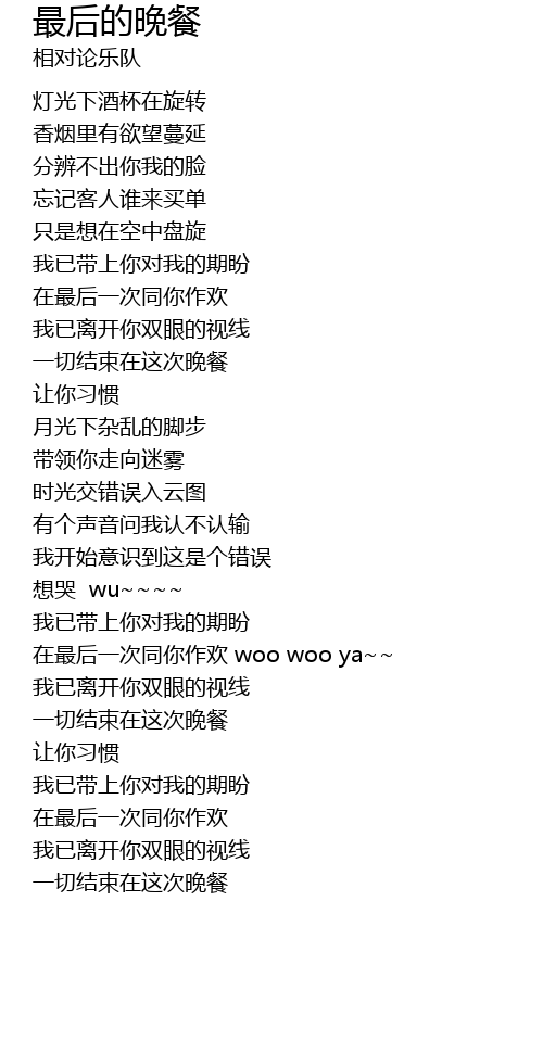 | [2:19:8] | 在最后一次同你作欢 woo woo ya~~ |