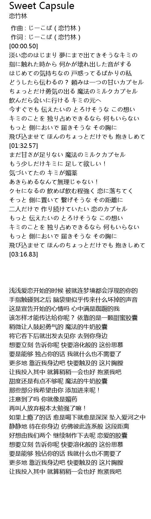 | [02:33.86] | 二人だけで 作り続けていたい 恋のカプセル |