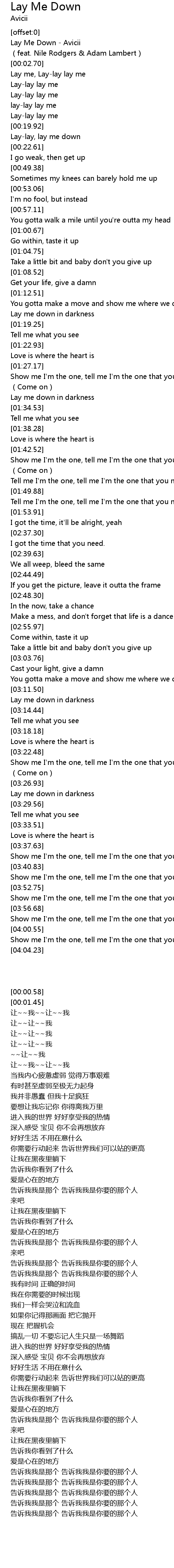 | [00:00.58] | Lay Me Down - Avicii |