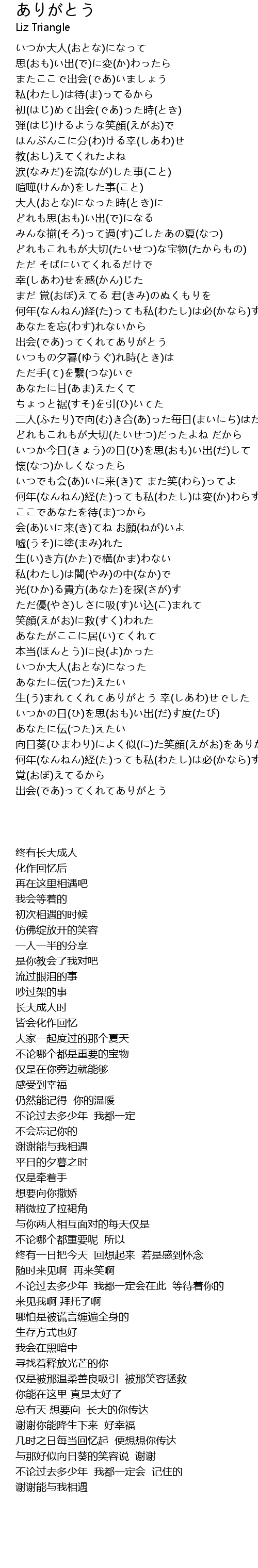 | [05:23.13] | 向日葵(ひまわり)によく似(に)た笑顔(えがお)をありがとう |